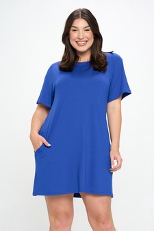 Women's Short Sleeve Cut Out Back Dress with Pockets