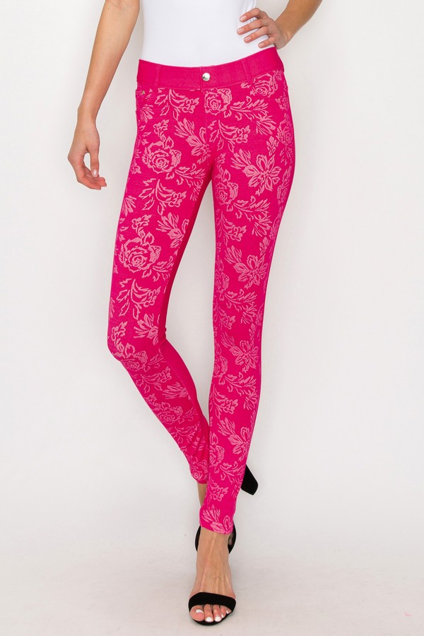 Women's Jegging with Floral Pattern (Fuchsia)