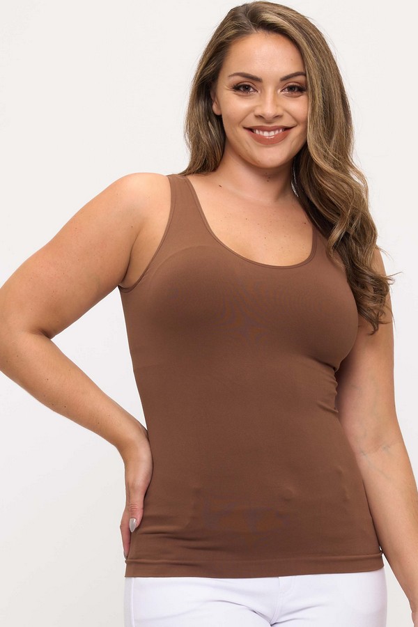 Effortless versatility meets everyday comfort in this reversible tank. Designed with a built-in bra for light support, it offers a sleek, smooth fit that flatters from every angle. Wear it with the scoop neck in front for a classic look, or flip it for a deeper neckline—two styles in one. Crafted from soft, stretchy fabric, this tank is perfect for layering under jackets or wearing solo with jeans, shorts, or skirts. A timeless staple you’ll reach for again and again.