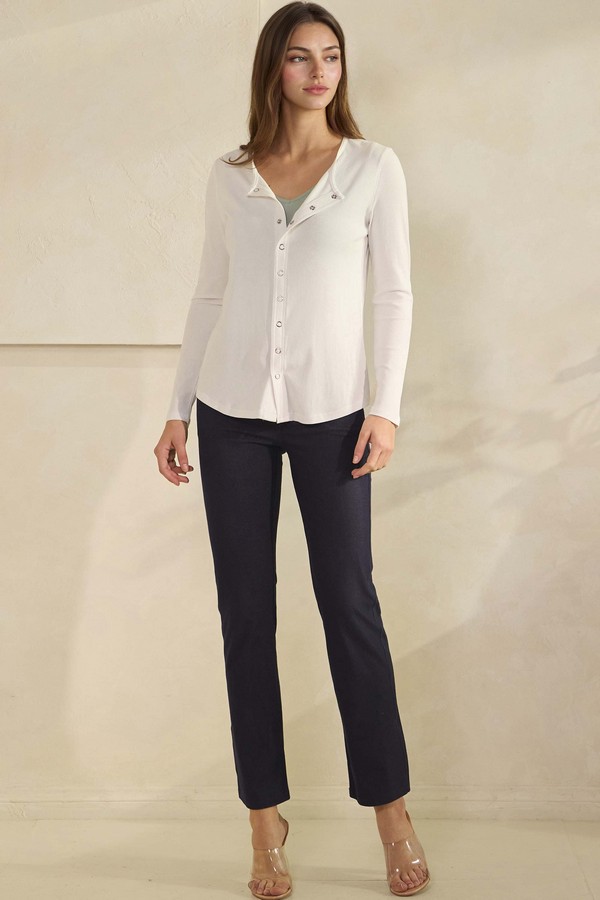 Soft, versatile, and effortlessly chic, this ribbed top can be perfectly styled as a top layer lightweight button up or worn alone as a polished everyday top. Crafted from a breathable, soft fabric, it features a relaxed-fit silhouette that drapes beautifully without feeling bulky. The scoop neckline and long sleeves add a timeless touch, while the rounded bottom hem makes layering easy. This piece moves seamlessly from casual lounging to styled outings with minimal effort.