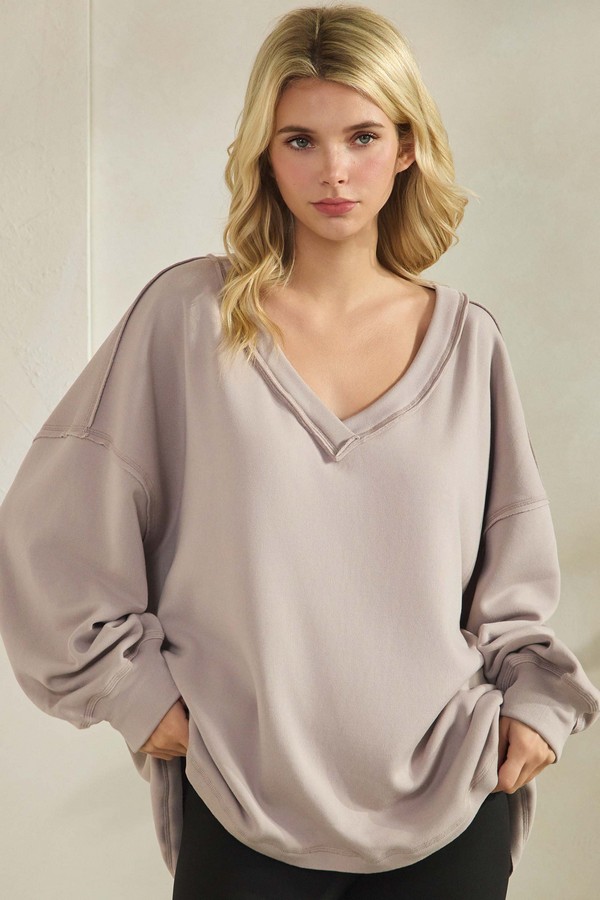 ETA 12/18/25 - Women's Soft Flow Fleece Loose Fit V-Neck Sweatshirt