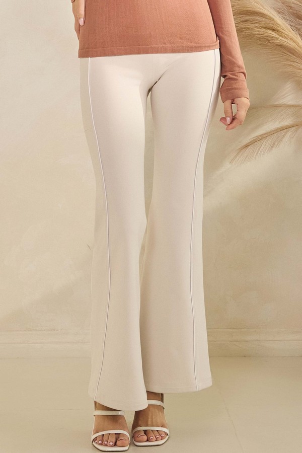 Meet your new favorite Active sleek black flare pants, designed with a high-rise waistband for a smooth, sculpted fit. The crisp white piping elongates the leg line, while the stretchy, breathable fabric moves effortlessly from studio to street. Finished with a subtle flare hem, they strike the perfect balance between sporty edge and everyday sophistication—ideal for pairing with sneakers or dressing up with a cropped jacket.