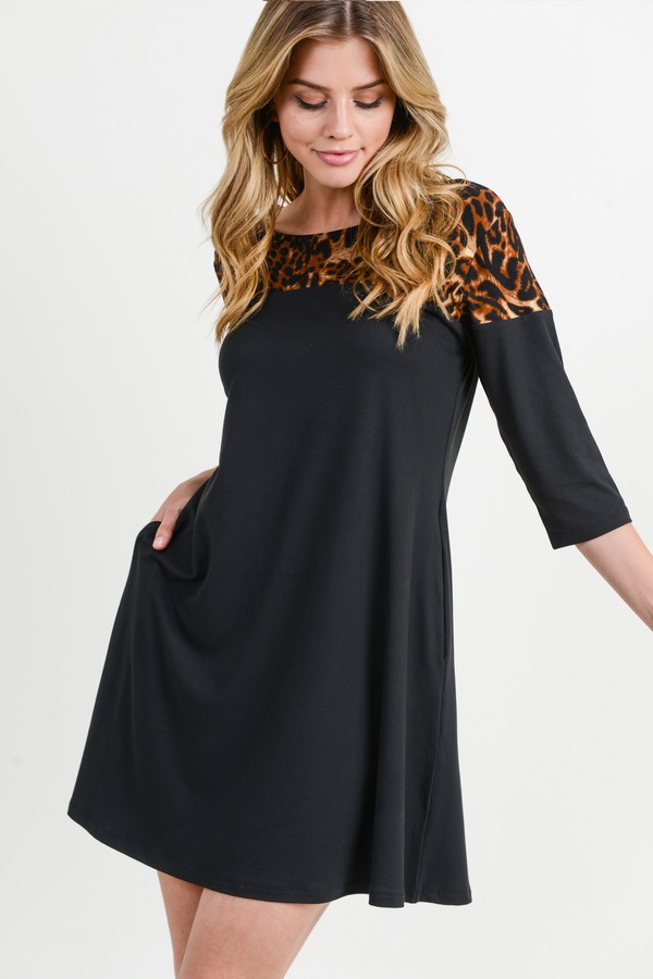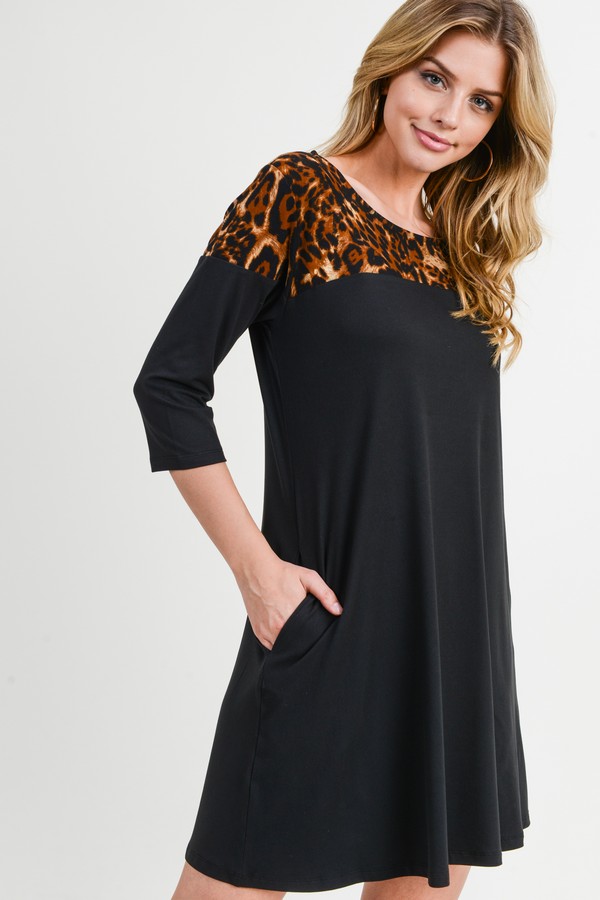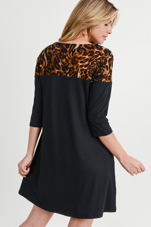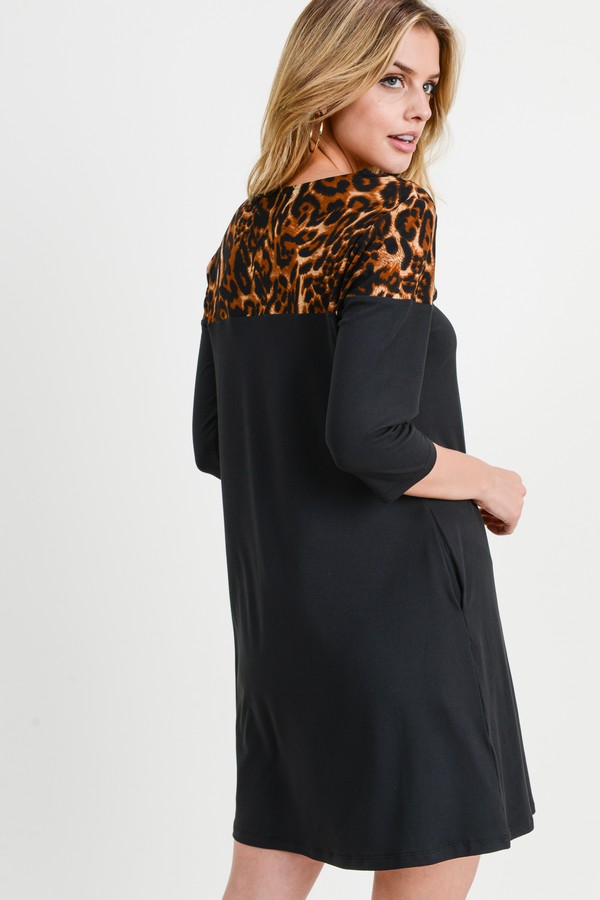Women's 3/4 Sleeve Cheetah Print A-Line Dress