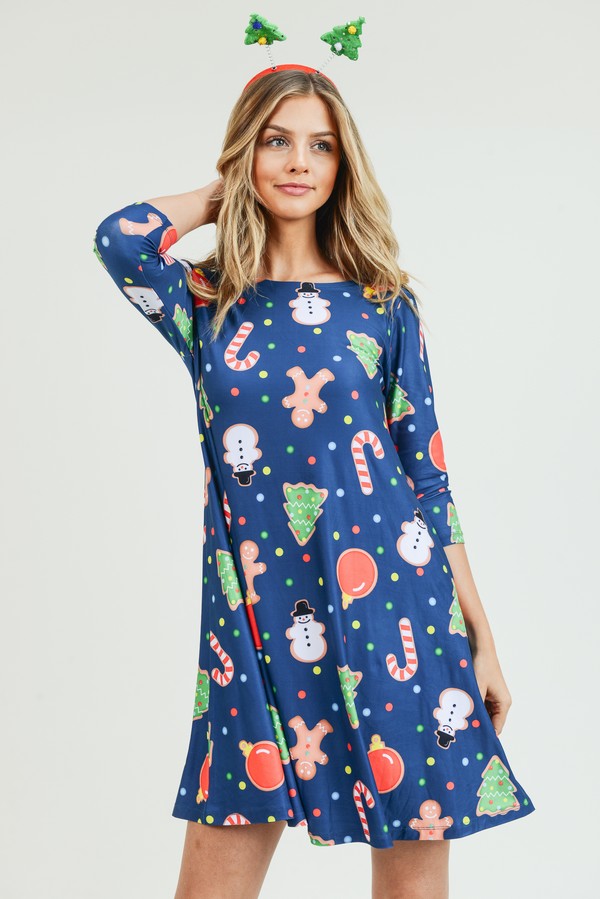 Women's Gingerbread Cookie Print A-Line Dress