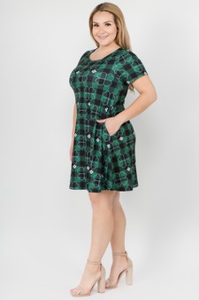 Bring everyone luck this St. Patrick's Day in this plaid clover print dress!