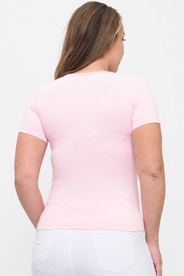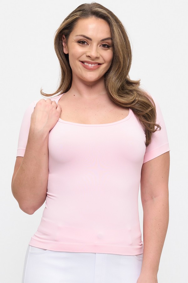 Designed for effortless comfort and a flattering fit, this seamless short sleeve top is a versatile essential for any wardrobe. The smooth, stretch fabric contours gently to the body, creating a sleek silhouette that’s perfect for layering or wearing on its own. Featuring a classic scoop neckline and clean, minimal design, this top pairs easily with jeans, leggings, or trousers for a polished everyday look.