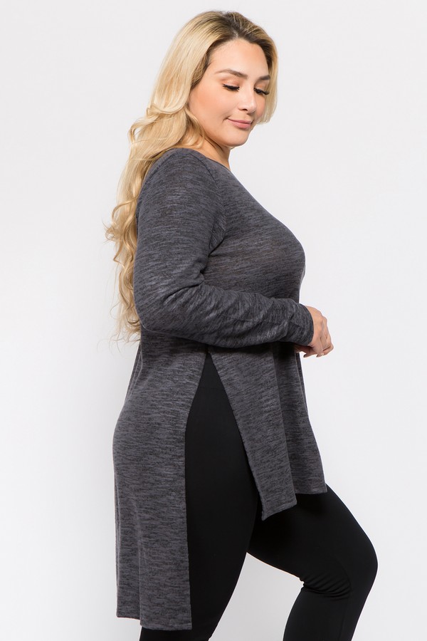 This is the perfect tunic top for throwing on to or from yoga class. It features a cozy, oversized silhouette and a space-dye knit pattern for a sporty look.