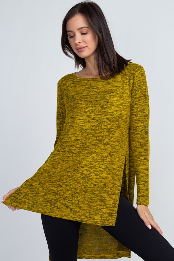 This is the perfect tunic top for throwing on to or from yoga class. It features a cozy, oversized silhouette and a space-dye knit pattern for a sporty look.