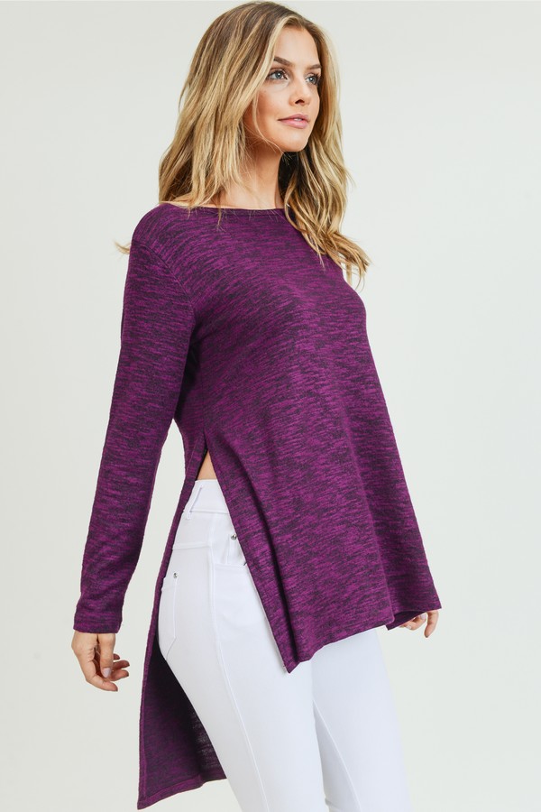 This is the perfect tunic top for throwing on to or from yoga class. It features a cozy, oversized silhouette and a space-dye knit pattern for a sporty look.