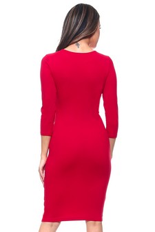 Crew Neck 3/4 Sleeve Midi Bodycon Dress