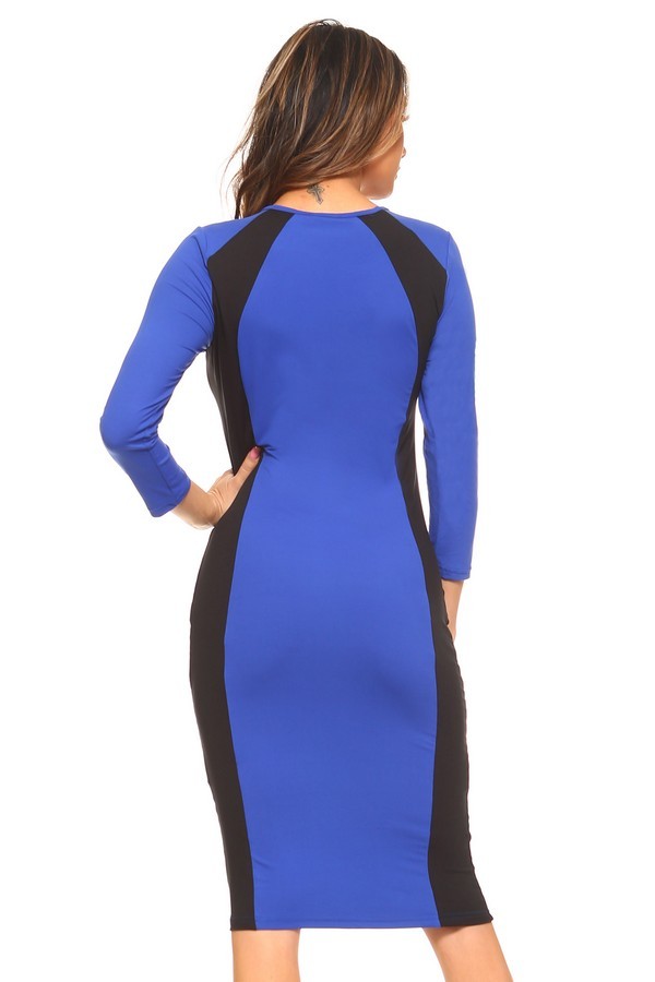 Turn heads this season with this gorgeous color block midi dress! Super colorful and fab day or night, it features a contrast hourglass panel front for flattering illusion look and solid black for the other part.