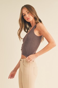 Fitted seamless, sleeveless reversible stone washed tank. Perfect for a casual day out or to layer under a cute jacket to add some flare!