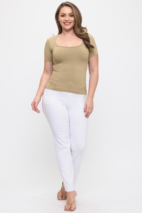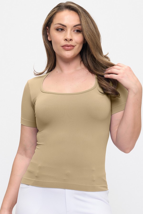 WHOLESALE Seamless Scoop Neck Short Sleeve Top