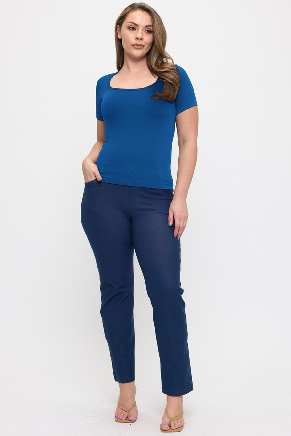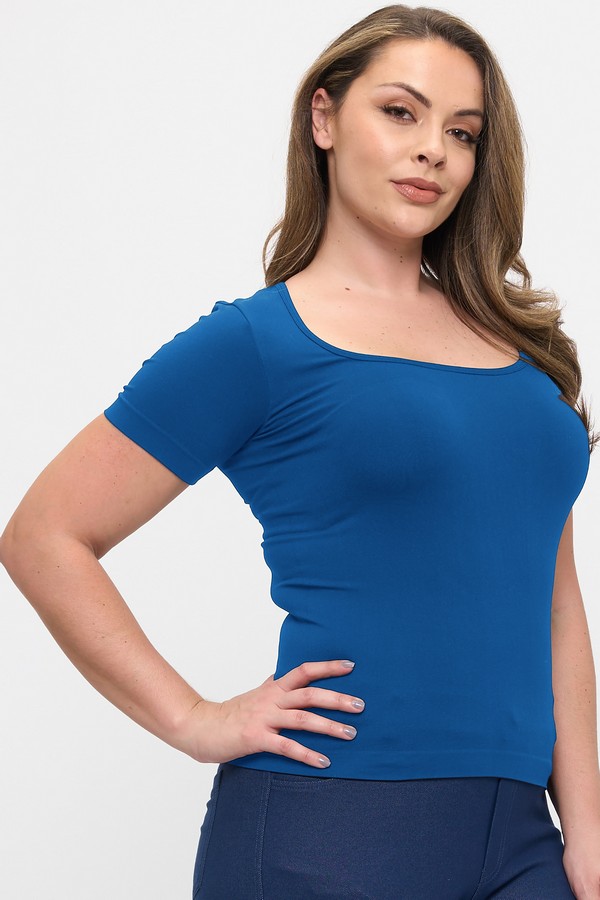 Designed for effortless comfort and a flattering fit, this seamless short sleeve top is a versatile essential for any wardrobe. The smooth, stretch fabric contours gently to the body, creating a sleek silhouette that’s perfect for layering or wearing on its own. Featuring a classic scoop neckline and clean, minimal design, this top pairs easily with jeans, leggings, or trousers for a polished everyday look.