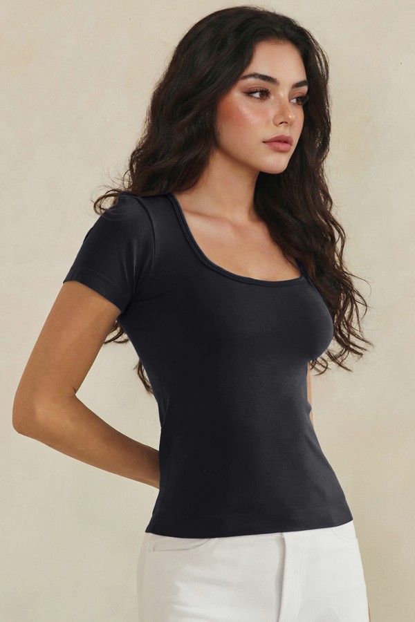 Designed for effortless comfort and a flattering fit, this seamless short sleeve top is a versatile essential for any wardrobe. The smooth, stretch fabric contours gently to the body, creating a sleek silhouette that’s perfect for layering or wearing on its own. Featuring a classic scoop neckline and clean, minimal design, this top pairs easily with jeans, leggings, or trousers for a polished everyday look.