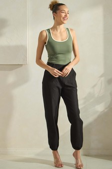 Elevate your wardrobe with this Contrast Two-Tone U or Scoop Neck Sleeveless Tank, designed for a modern, stylish look. Featuring a flattering U-neck or scoop neck, this tank offers a soft, curved neckline that enhances the overall silhouette. The bold contrast color binding along the neck and armholes adds a striking visual detail, making this piece a standout in any casual outfit. Crafted with a sleek, sleeveless design, it's perfect for layering or wearing solo on warmer days.