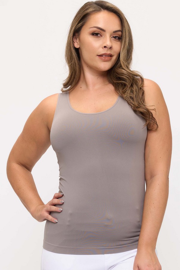 Effortless versatility meets everyday comfort in this reversible tank. Designed with a built-in bra for light support, it offers a sleek, smooth fit that flatters from every angle. Wear it with the scoop neck in front for a classic look, or flip it for a deeper neckline—two styles in one. Crafted from soft, stretchy fabric, this tank is perfect for layering under jackets or wearing solo with jeans, shorts, or skirts. A timeless staple you’ll reach for again and again.