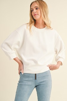 Slip into this comfortable and versatile sweater with sleeves not too long and a waist length that is just right. Made with the softest, lightweight scuba fabric you’ll ever lay hands on. Perfect for any occasion, whether it be running errands, lounging around, or a relaxing autumn night out. Dress it up or down, the world’s your oyster!