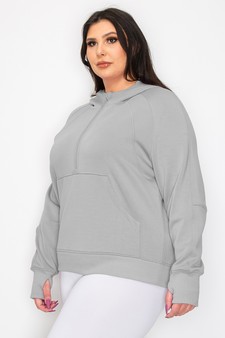 This Scuba Quarter Zip Hoodie offers all-day comfort and style. It's designed with thumb holes, a kangaroo pocket, and a wide cuffed trim for a secure fit. The lightweight fabric keeps you warm without feeling heavy.