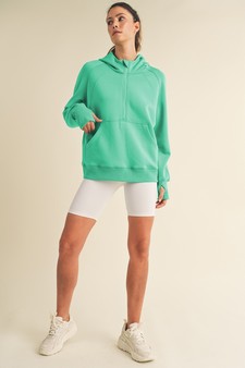 This Scuba Quarter Zip Hoodie offers all-day comfort and style. It's designed with thumb holes, a kangaroo pocket, and a wide cuffed trim for a secure fit. The lightweight fabric keeps you warm without feeling heavy.