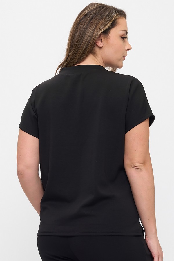 Designed for ease and elegance, this relaxed-fit V-neck top blends softness with structure. Its draped silhouette flows past the hips, offering a flattering, elongated line that moves effortlessly from lounge to street. Short sleeves and a fluid cut create a breathable, unfussy profile, perfect for layering or wearing solo. Whether styled with leggings, denim, or cozy bottoms, it’s a versatile staple that elevates casual dressing with understated polish.