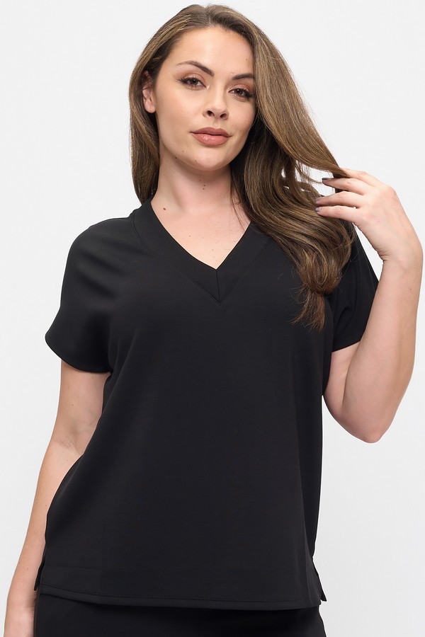 Women's V-Neck Short Sleeve Thin Modal Scuba Top
