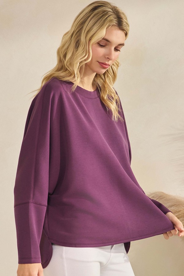 Refresh your everyday wardrobe with this Dolman Sleeve Top. Designed for effortless comfort and modern style. The extended drop shoulder dolman sleeves create an extra relaxed, yet polished silhouette, while the high-low curved hem adds a subtle, fashion-forward edge perfect for tucking or wearing solo. The crew neckline and loose-fit design offer versatile styling while our popular Sofie Soft skin-friendly fabric feels luxurious against the skin.