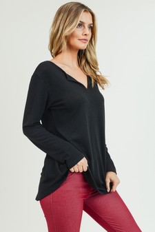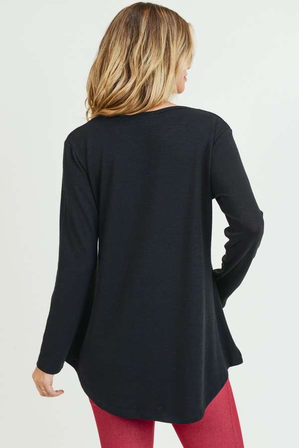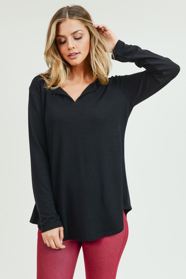 Slip into this breezy tunic top for comfort and style featuring a slit neckline and round hem.