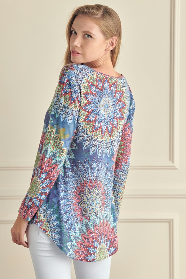All good vibes in our bohemian printed long sleeve top featuring a neckline slit to add some shape along with a cute colorful pattern to spice up your wardrobe. Mix in this top with your neutral colored pants to spice things up!