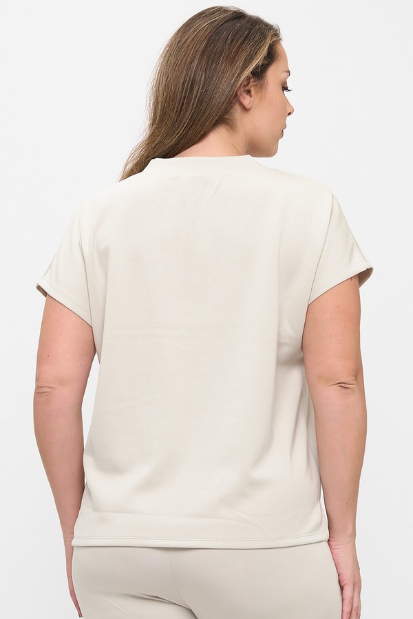 Designed for ease and elegance, this relaxed-fit V-neck top blends softness with structure. Its draped silhouette flows past the hips, offering a flattering, elongated line that moves effortlessly from lounge to street. Short sleeves and a fluid cut create a breathable, unfussy profile, perfect for layering or wearing solo. Whether styled with leggings, denim, or cozy bottoms, it’s a versatile staple that elevates casual dressing with understated polish.