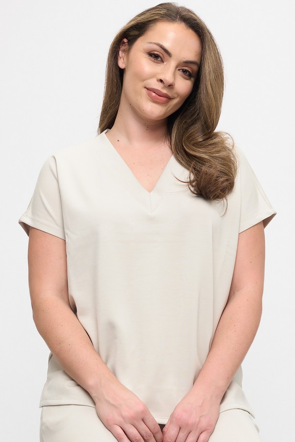 Women's V-Neck Short Sleeve Thin Modal Scuba Top