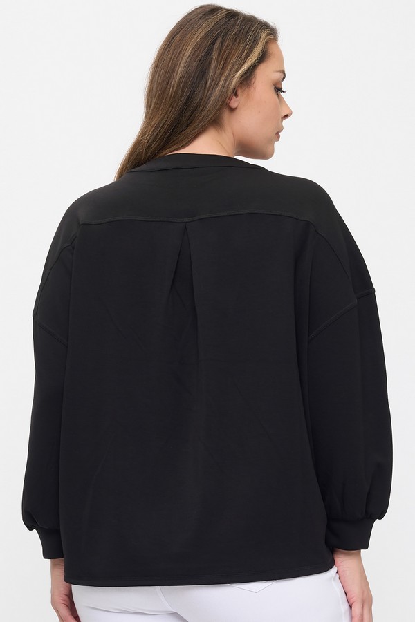 Soft structure meets everyday ease in this Soft long-sleeve top. Designed with a relaxed silhouette and subtly puffed sleeves, it features a round neckline and a Four-button placket with warm brown accents. The gathered cuffs add a gentle finish, balancing comfort with a touch of polish. Pair it with your favorite leggings or Jeans for a look that moves effortlessly from casual to styled.