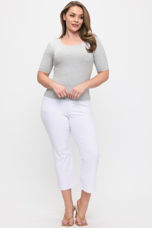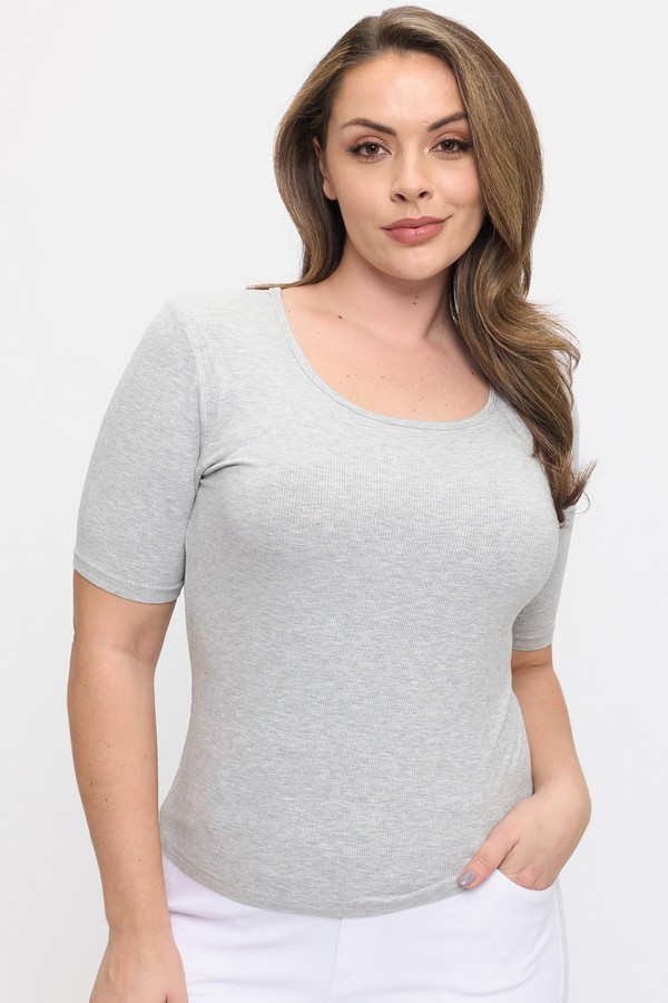 A minimalist essential with subtle texture and sculpted ease. This fitted scoop-neck top features a fine ribbed knit that hugs the body with soft stretch, Mid sleeves that balance coverage and breathability, and a clean neckline that flatters without fuss. Designed for layering or solo wear, it’s your go-to for elevated basics with a modern edge.