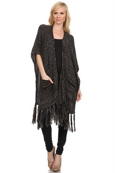 Over sized cardigan with fringe. Size: One size fits most 6 pcs per pack, all sizes in pack are One size fits most.