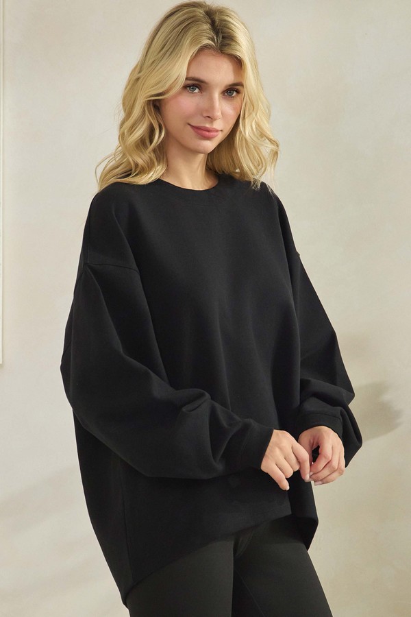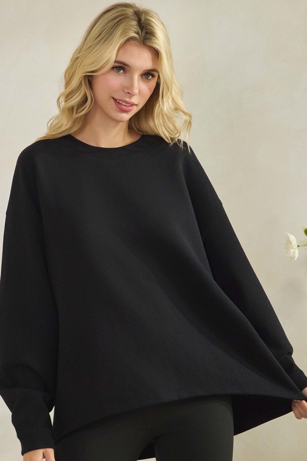 A laid-back layer with a clean, contemporary profile. This long-sleeve pullover features an easy, unstructured fit that creates a naturally relaxed drape. The crew neckline and smooth, uninterrupted surface keep the look streamlined, while the slightly loose fit proportions add a modern, effortless attitude. Designed for everyday wear, it brings simplicity and comfort together in a refined, understated way.