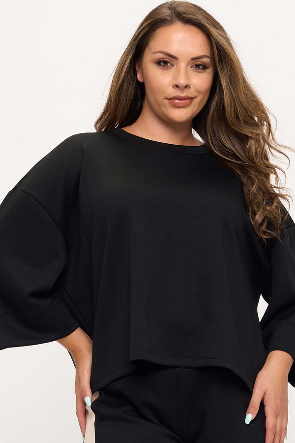 Embrace relaxed sophistication with this Relaxed Soft Top. Its oversized silhouette, wide sleeves, and clean lines create an effortlessly modern look, while the soft fabric adds a cozy, elevated touch. Designed with drop shoulders and subtle hem slits, this top offers comfort without sacrificing style—perfect for pairing with tailored pants, denim, or your favorite lounge pieces.