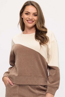 Women’s Asymmetrical Two Tone Corduroy Pullover Sweatshirt