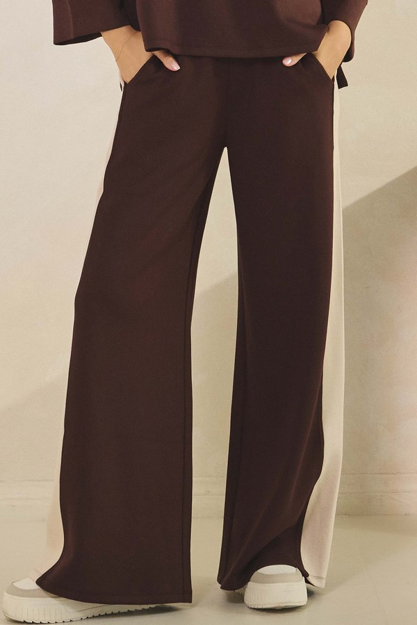 These sporty-chic bottoms feature a Bold side stripe that elongates the legs and add a retro-inspired edge. Crafted from a soft, structured knit, they offer comfort without compromising the silhouette. The wide-leg fit and elastic waistband make them ideal for everything from lounging in style to running city errands with a statement look.