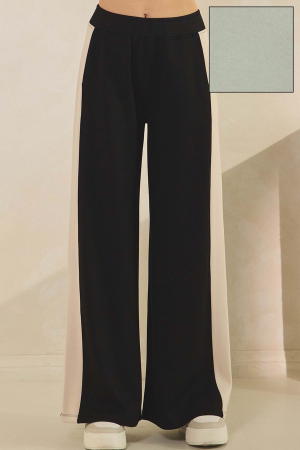 These sporty-chic bottoms feature a Bold side stripe that elongates the legs and add a retro-inspired edge. Crafted from a soft, structured knit, they offer comfort without compromising the silhouette. The wide-leg fit and elastic waistband make them ideal for everything from lounging in style to running city errands with a statement look.