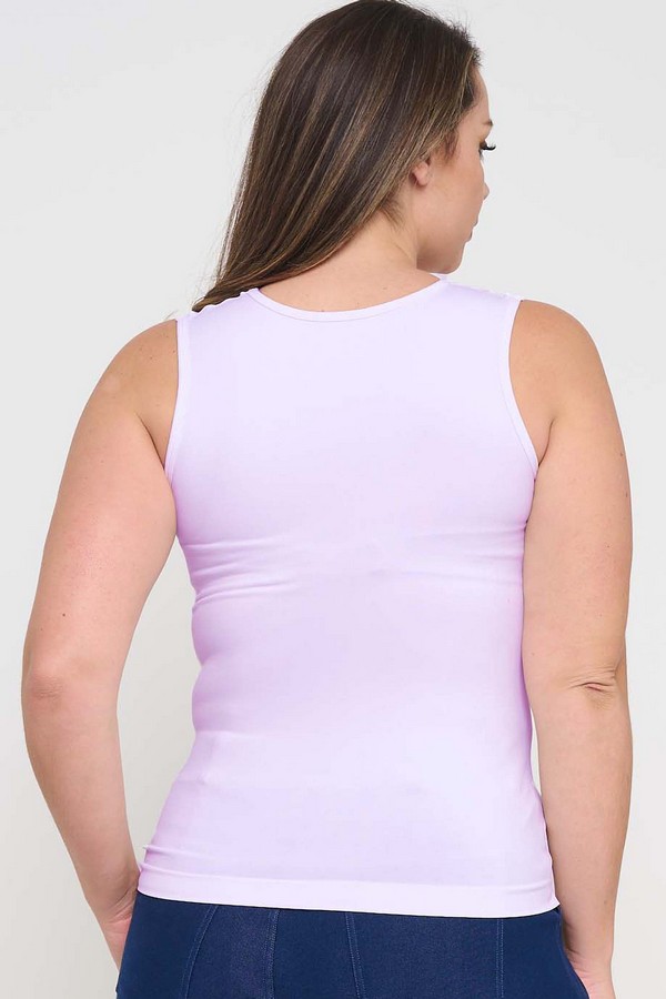 This sleek sleeveless tank features a U-neck or scoop neck design, offering a soft, rounded neckline that adds a flattering, feminine touch. The self-binding finish along the neck and armholes provides a clean, seamless look, with the same fabric used to finish the edges for a cohesive and streamlined silhouette. The absence of sleeves gives it a light, breathable feel, making it perfect for layering or wearing on its own