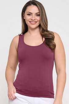 This sleek sleeveless tank features a U-neck or scoop neck design, offering a soft, rounded neckline that adds a flattering, feminine touch. The self-binding finish along the neck and armholes provides a clean, seamless look, with the same fabric used to finish the edges for a cohesive and streamlined silhouette. The absence of sleeves gives it a light, breathable feel, making it perfect for layering or wearing on its own