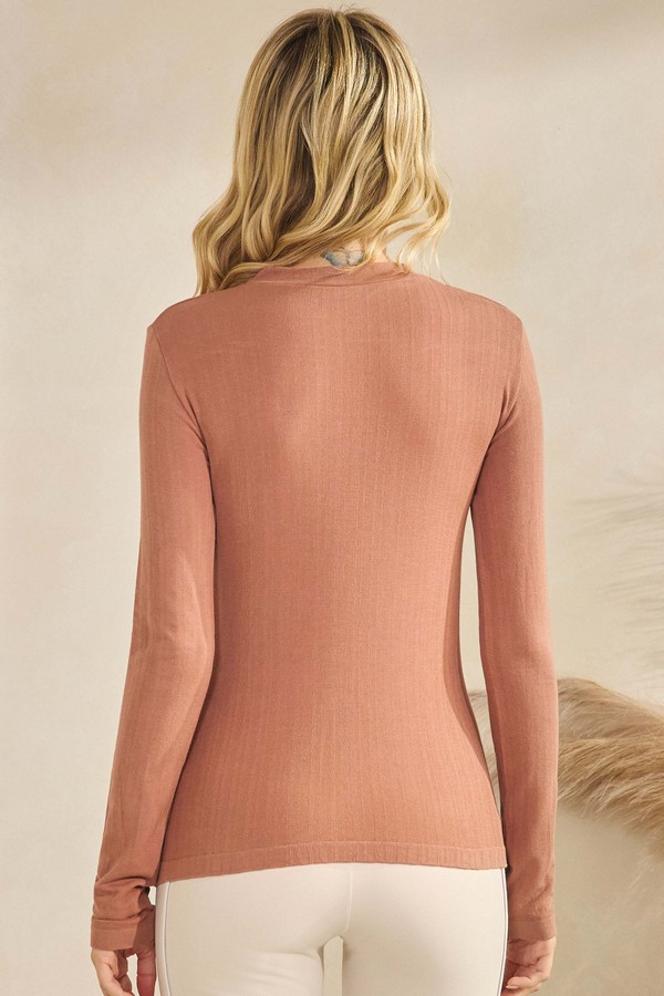 Redefine layering with the Seamlessly Soft Modal Long Sleeve Top, featuring a low mock neck and seamless construction for a smooth fit. Crafted from extra soft, stretchy fabric, it hugs your silhouette while offering all-day comfort and durability. The long sleeves and ribbed texture add subtle sophistication, making it a versatile piece to wear solo for a sleek, elevated look or layer under jackets and blazers for polished, contemporary styling. Designed to move with you, this top is a timeless wardrobe essential for effortless, modern chic.