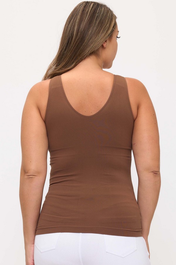 Effortless versatility meets everyday comfort in this reversible tank. Designed with a built-in bra for light support, it offers a sleek, smooth fit that flatters from every angle. Wear it with the scoop neck in front for a classic look, or flip it for a deeper neckline—two styles in one. Crafted from soft, stretchy fabric, this tank is perfect for layering under jackets or wearing solo with jeans, shorts, or skirts. A timeless staple you’ll reach for again and again.