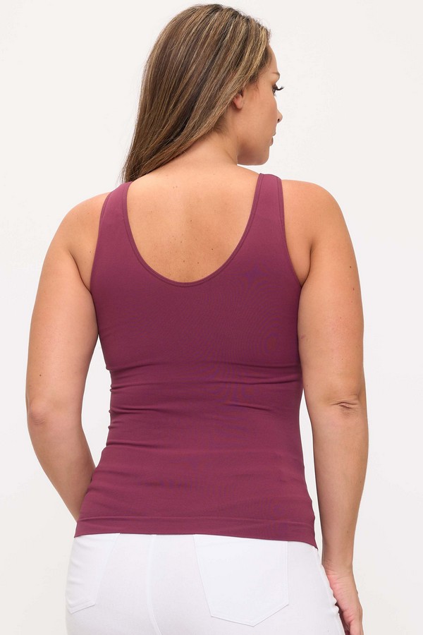 Effortless versatility meets everyday comfort in this reversible tank. Designed with a built-in bra for light support, it offers a sleek, smooth fit that flatters from every angle. Wear it with the scoop neck in front for a classic look, or flip it for a deeper neckline—two styles in one. Crafted from soft, stretchy fabric, this tank is perfect for layering under jackets or wearing solo with jeans, shorts, or skirts. A timeless staple you’ll reach for again and again.