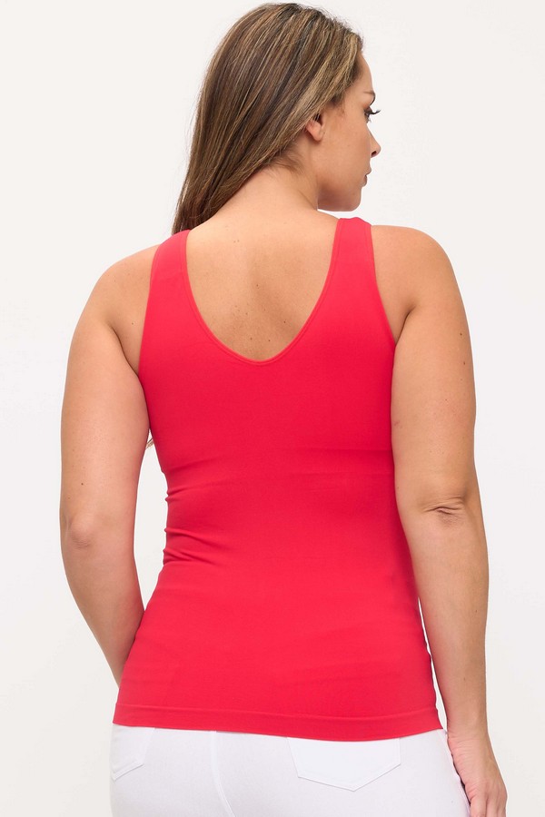 Effortless versatility meets everyday comfort in this reversible tank. Designed with a built-in bra for light support, it offers a sleek, smooth fit that flatters from every angle. Wear it with the scoop neck in front for a classic look, or flip it for a deeper neckline—two styles in one. Crafted from soft, stretchy fabric, this tank is perfect for layering under jackets or wearing solo with jeans, shorts, or skirts. A timeless staple you’ll reach for again and again.
