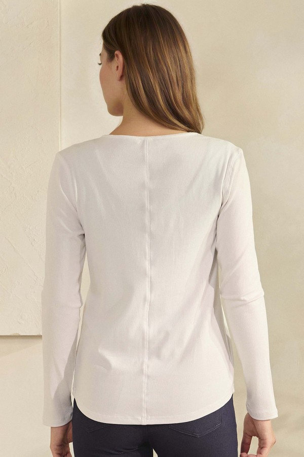 Soft, versatile, and effortlessly chic, this ribbed top can be perfectly styled as a top layer lightweight button up or worn alone as a polished everyday top. Crafted from a breathable, soft fabric, it features a relaxed-fit silhouette that drapes beautifully without feeling bulky. The scoop neckline and long sleeves add a timeless touch, while the rounded bottom hem makes layering easy. This piece moves seamlessly from casual lounging to styled outings with minimal effort.