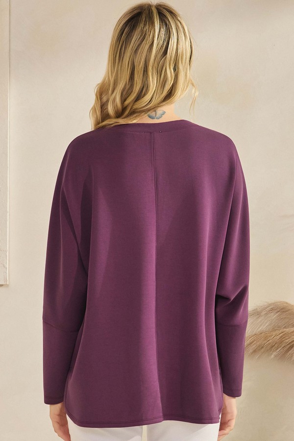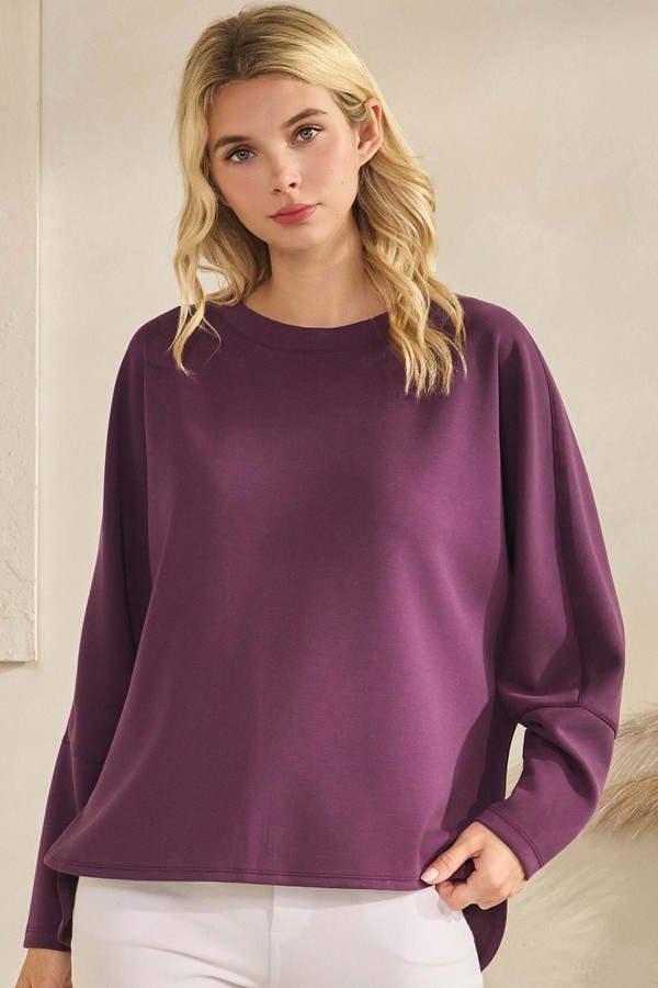 Refresh your everyday wardrobe with this Dolman Sleeve Top. Designed for effortless comfort and modern style. The extended drop shoulder dolman sleeves create an extra relaxed, yet polished silhouette, while the high-low curved hem adds a subtle, fashion-forward edge perfect for tucking or wearing solo. The crew neckline and loose-fit design offer versatile styling while our popular Sofie Soft skin-friendly fabric feels luxurious against the skin.