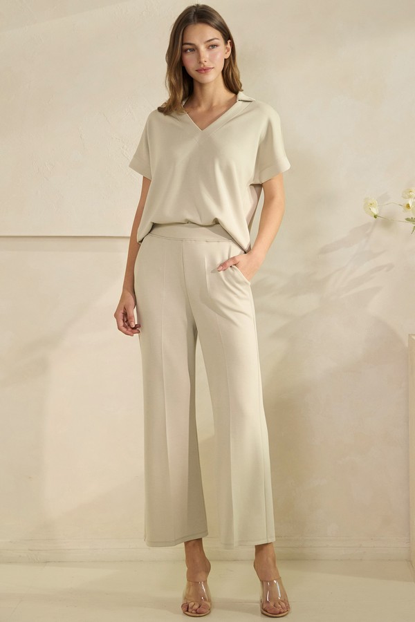 Designed for ease and elegance, this relaxed-fit Set blends softness with structure. Its draped silhouette flows, offering a flattering, elongated line that moves effortlessly from lounge to street. This Set creates a fluid cut, unfussy profile, perfect for a versatile look that elevates casual dressing with understated polish.