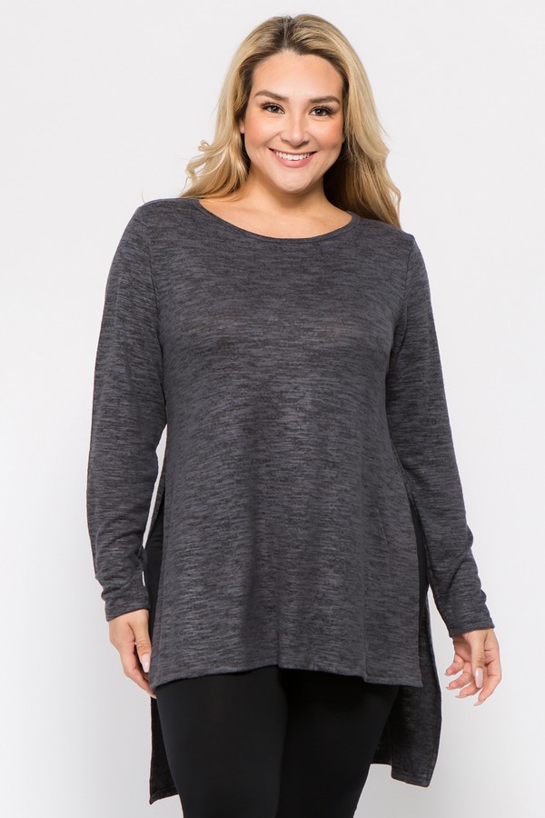 This is the perfect tunic top for throwing on to or from yoga class. It features a cozy, oversized silhouette and a space-dye knit pattern for a sporty look.