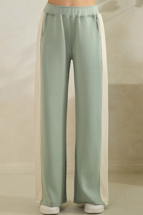 These sporty-chic bottoms feature a Bold side stripe that elongates the legs and add a retro-inspired edge. Crafted from a soft, structured knit, they offer comfort without compromising the silhouette. The wide-leg fit and elastic waistband make them ideal for everything from lounging in style to running city errands with a statement look.